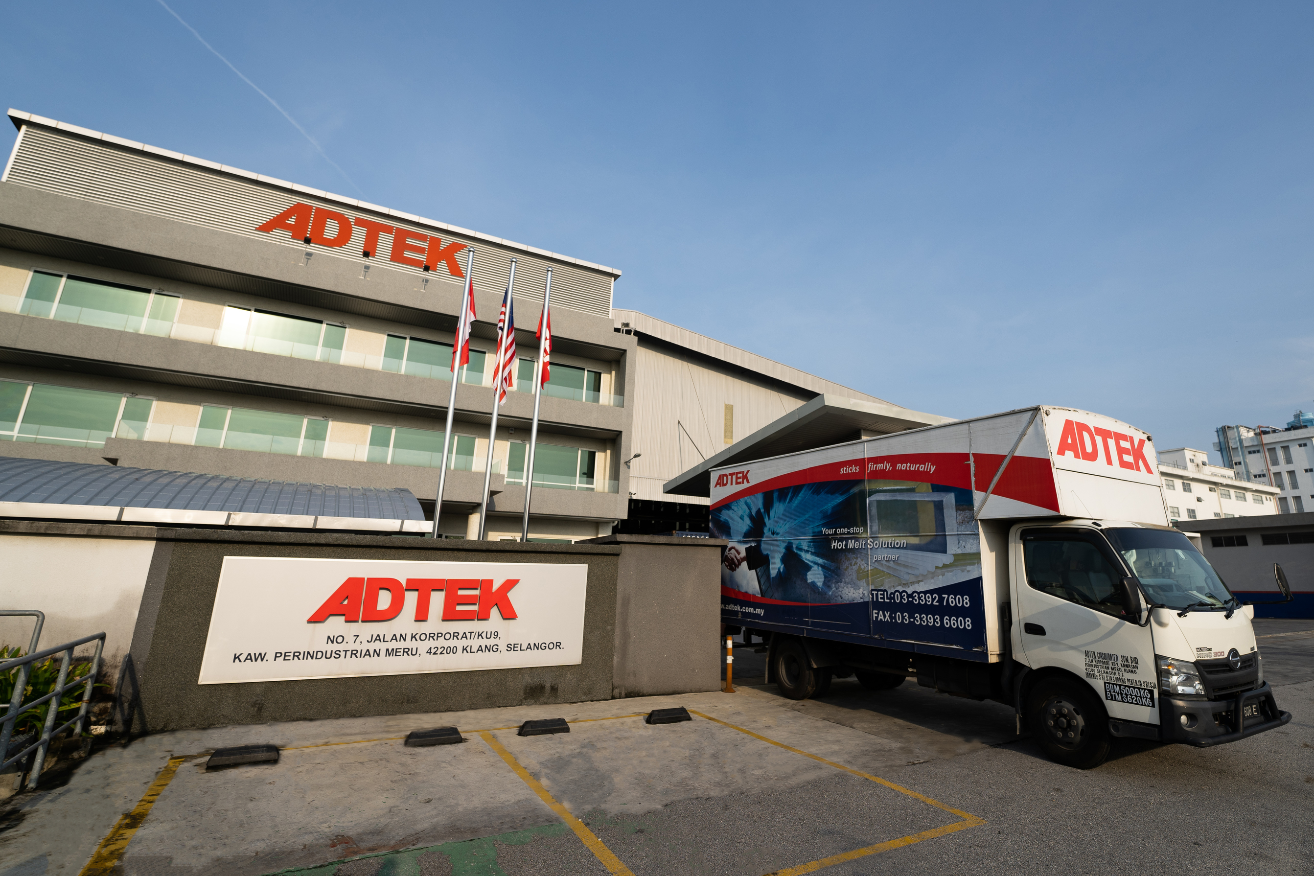 Adtek has a hot melt adhesive manufacturing plant in Malaysia, has efficient production based on excellent production technology, and has developed sales in about 50 countries around the world of hot melt, DIY glue stick, industrial pellet, etc .